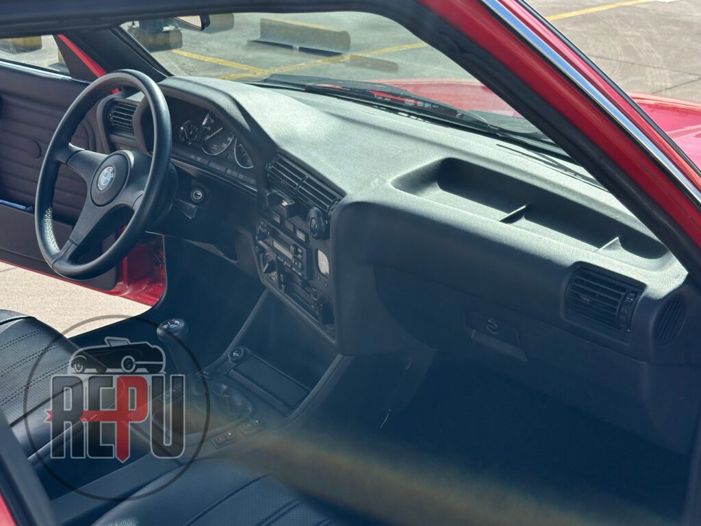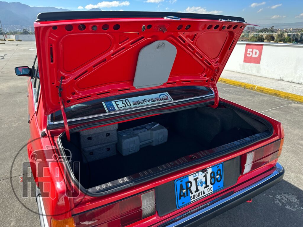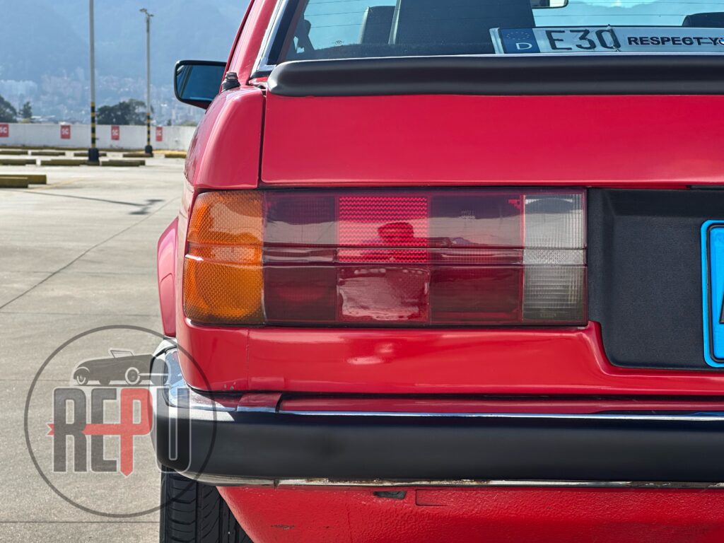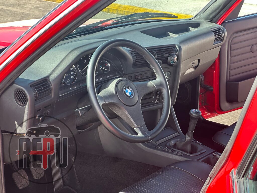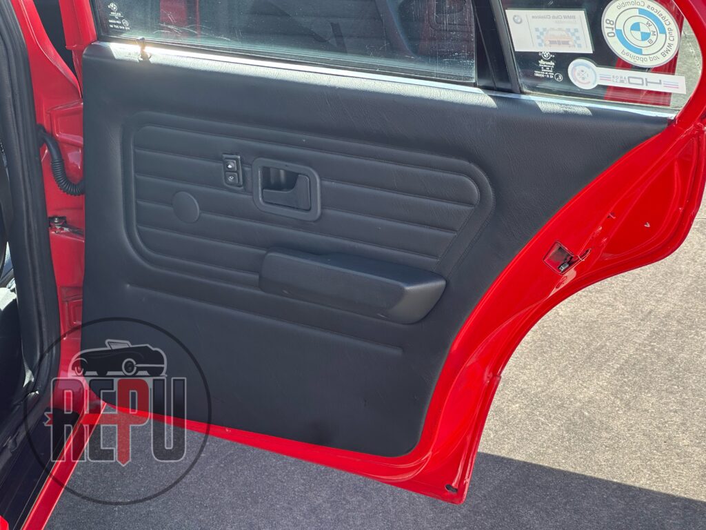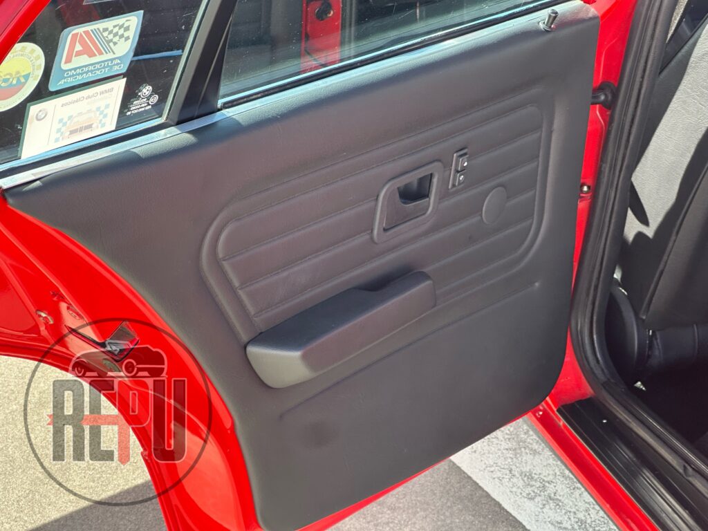 • Dentro de su equipamiento destacamos su tapicería original en vinilo negro en perfecto estado estado, sillas comfort, timón sport de tres puntas, radio cassette BMW de época, reloj análogo de consola, eleva vidrios eléctricos, techo corredizo eléctrico, bloqueo central, apoya cabezas traseros, rines BBS 14″, kit de herramientas completo, cruceta y gato original, strut bar delantera, farolas Smileys Depo, aire acondicionado funcional, spoiler y porta placa trasero.