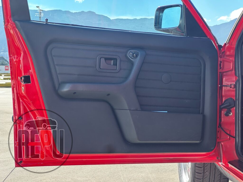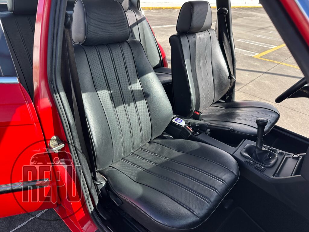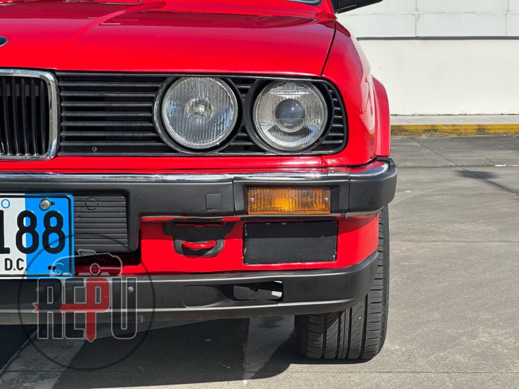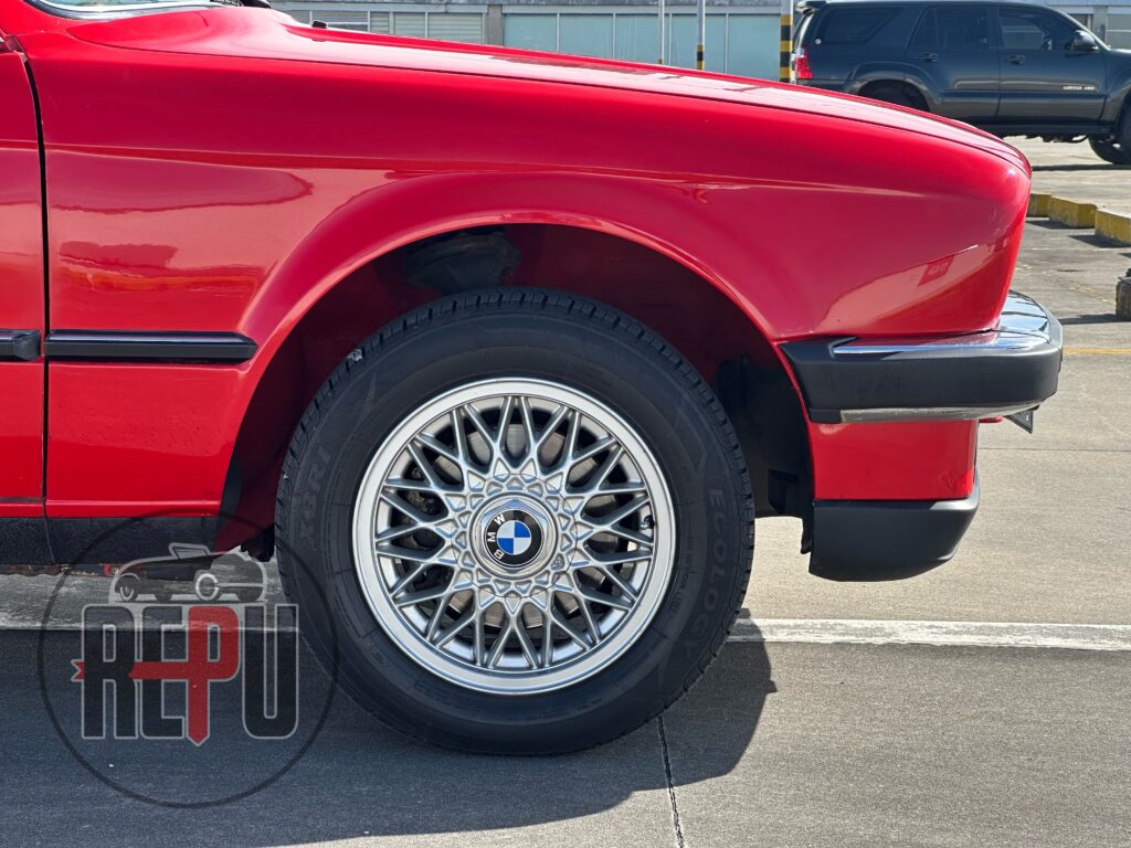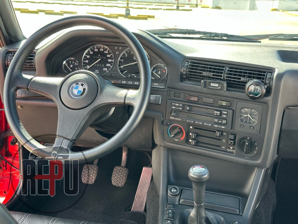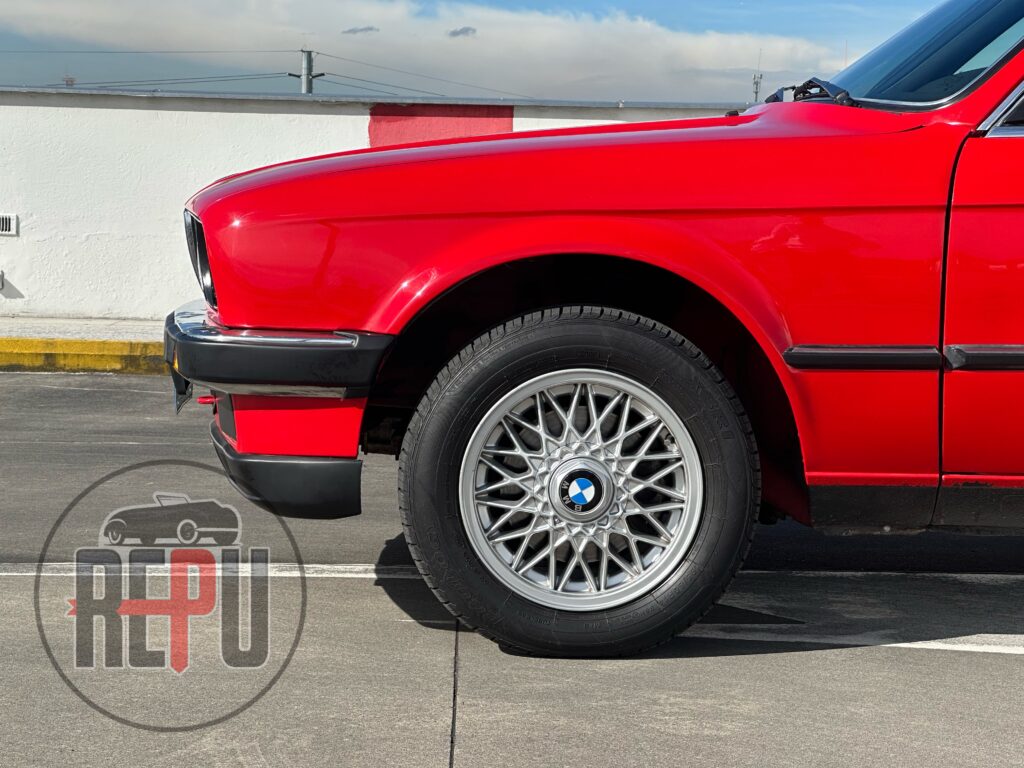 • Dentro de su equipamiento destacamos su tapicería original en vinilo negro en perfecto estado estado, sillas comfort, timón sport de tres puntas, radio cassette BMW de época, reloj análogo de consola, eleva vidrios eléctricos, techo corredizo eléctrico, bloqueo central, apoya cabezas traseros, rines BBS 14″, kit de herramientas completo, cruceta y gato original, strut bar delantera, farolas Smileys Depo, aire acondicionado funcional, spoiler y porta placa trasero.