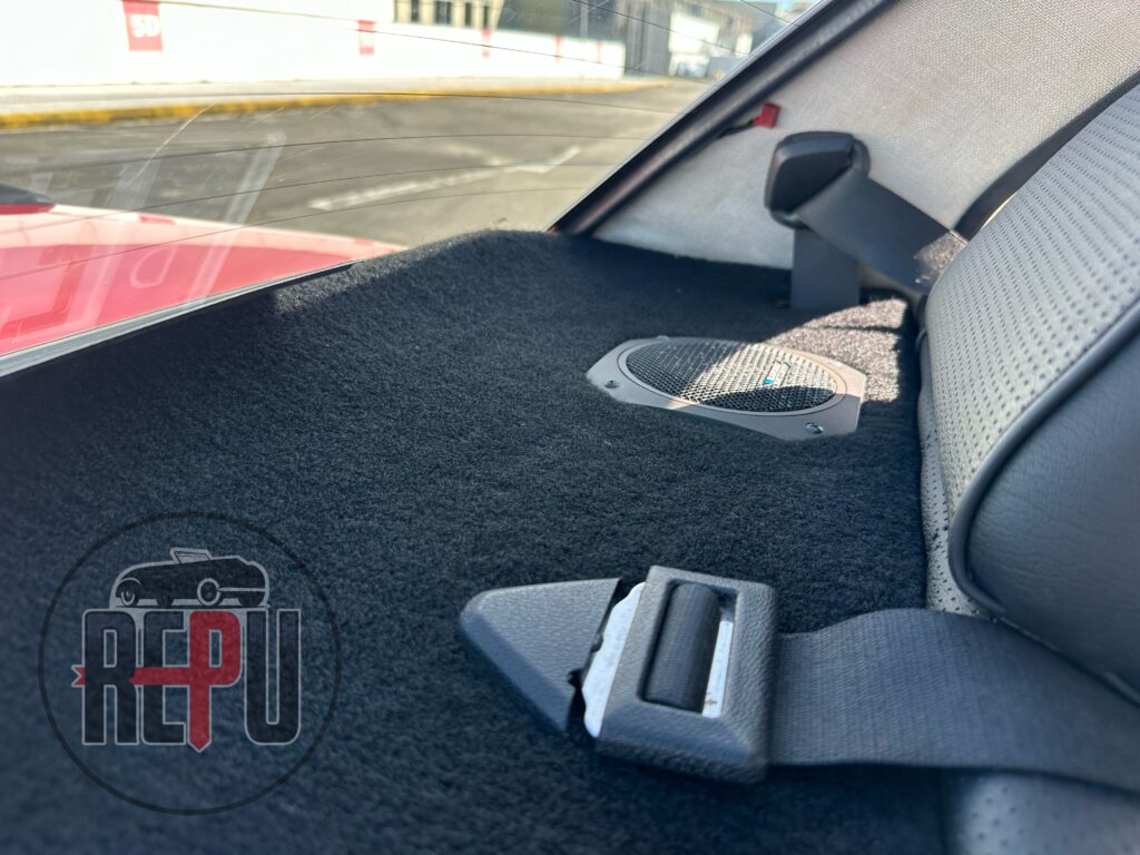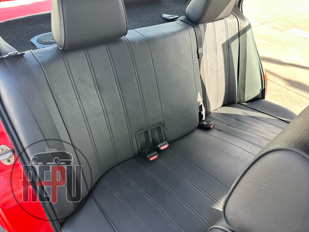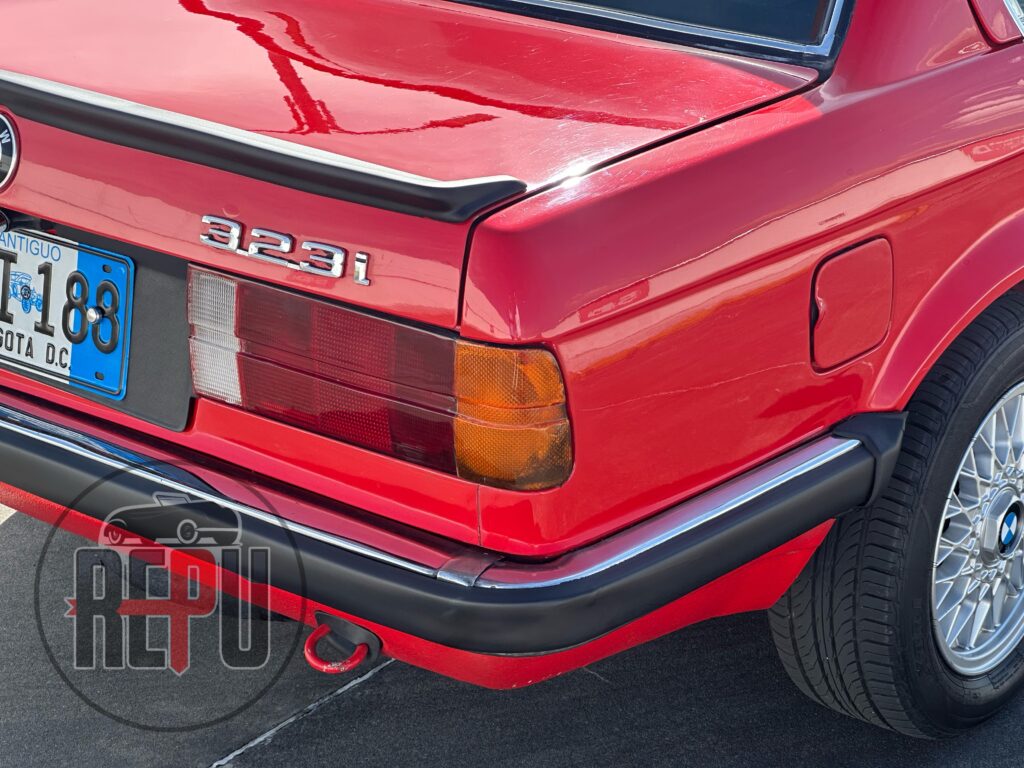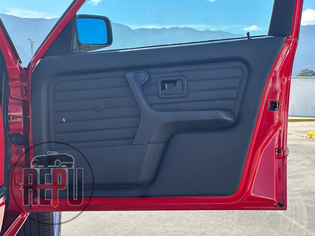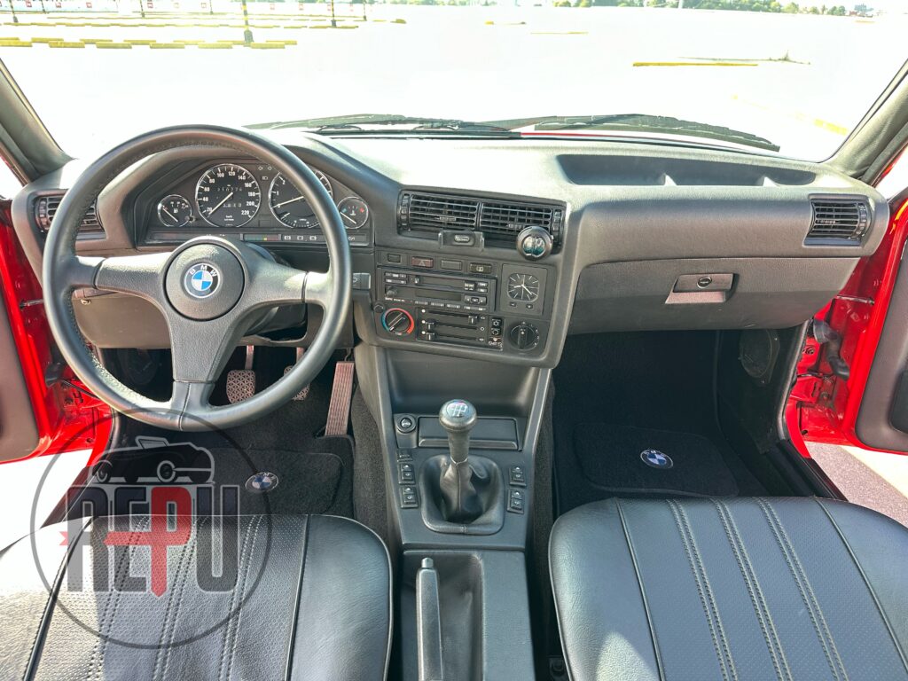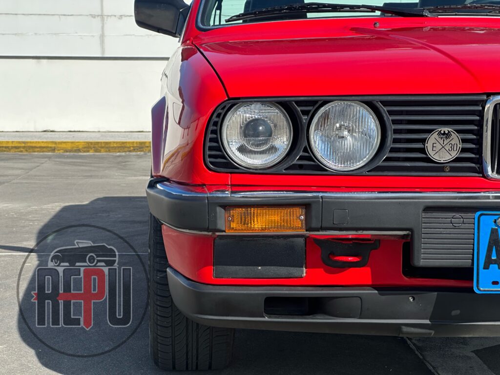 • Dentro de su equipamiento destacamos su tapicería original en vinilo negro en perfecto estado estado, sillas comfort, timón sport de tres puntas, radio cassette BMW de época, reloj análogo de consola, eleva vidrios eléctricos, techo corredizo eléctrico, bloqueo central, apoya cabezas traseros, rines BBS 14″, kit de herramientas completo, cruceta y gato original, strut bar delantera, farolas Smileys Depo, aire acondicionado funcional, spoiler y porta placa trasero.