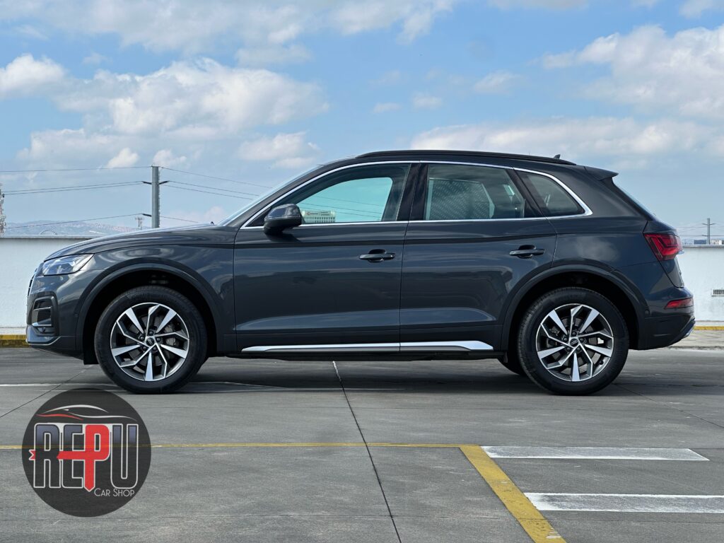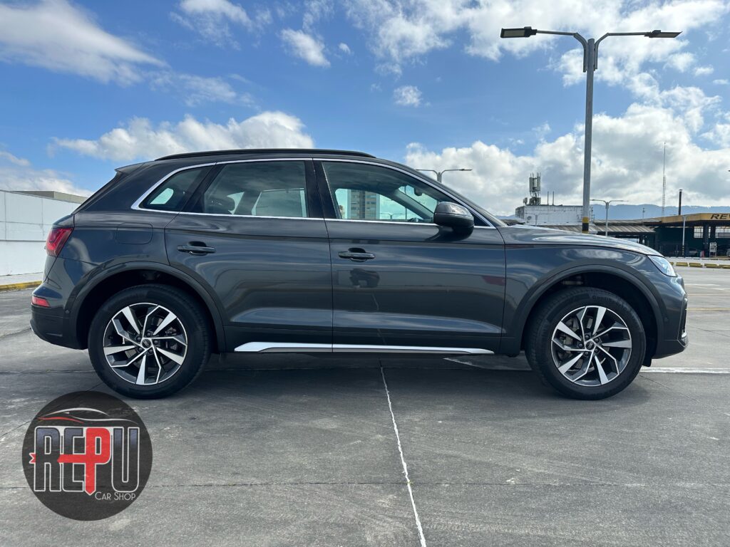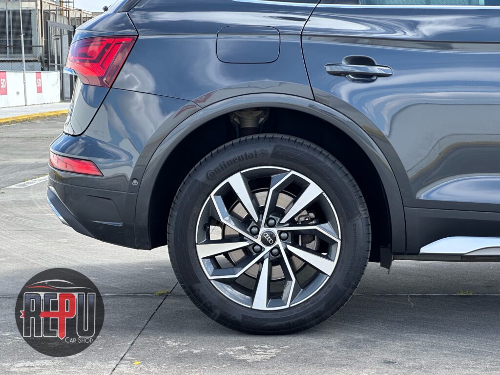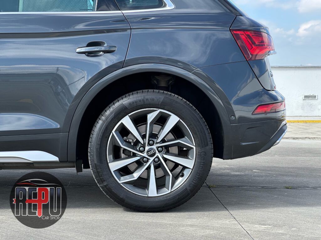 - Bella Audi Q5 2023 mild Hybrid, SUV de tamaño mediano, equipada con un motor 2.000cc turbocargado que produce 250hp y 370NM de torque de serie, con una acaleración de 0-100kmh en 6,3s y una velocidad máxima de 240kmh. Viene equipada con una caja de 7 cambios S Tronic de doble embrague y tracción QUATTRO (tracción en las 4 ruedas) y paddle shift en el timón.