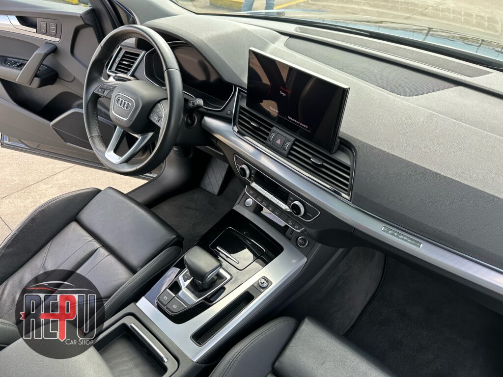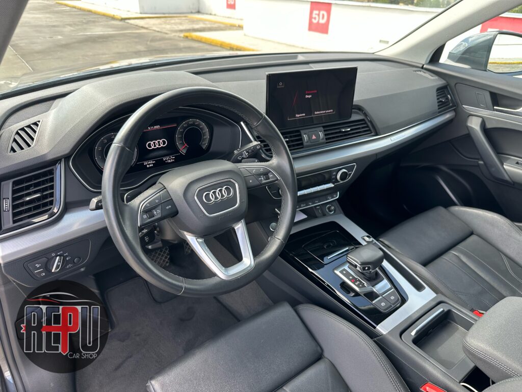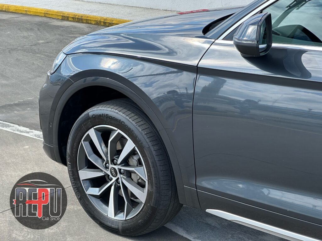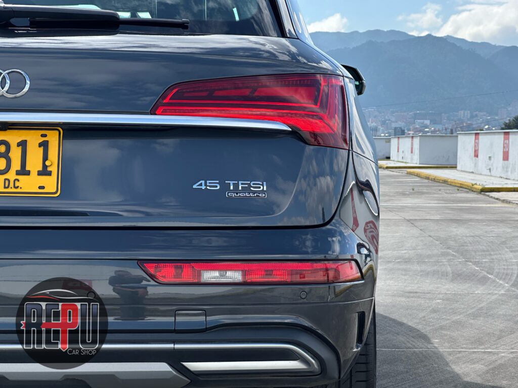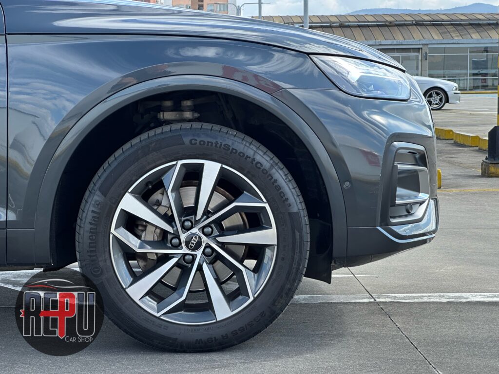 - Bella Audi Q5 2023 mild Hybrid, SUV de tamaño mediano, equipada con un motor 2.000cc turbocargado que produce 250hp y 370NM de torque de serie, con una acaleración de 0-100kmh en 6,3s y una velocidad máxima de 240kmh. Viene equipada con una caja de 7 cambios S Tronic de doble embrague y tracción QUATTRO (tracción en las 4 ruedas) y paddle shift en el timón.