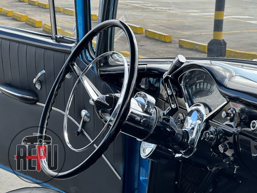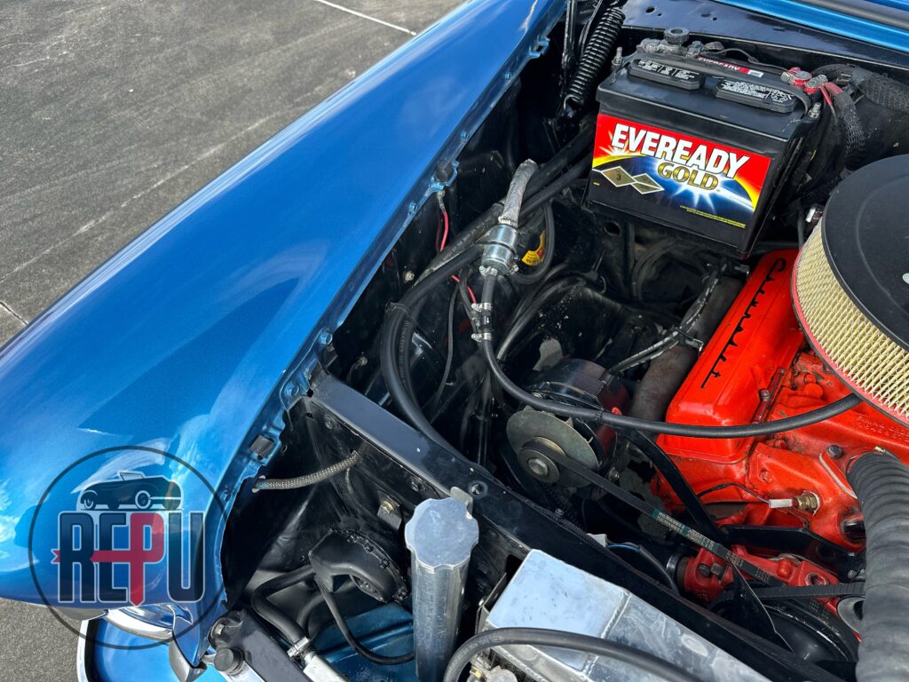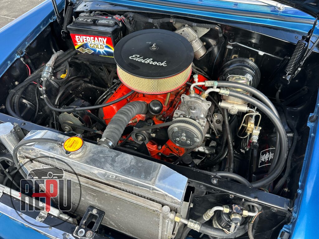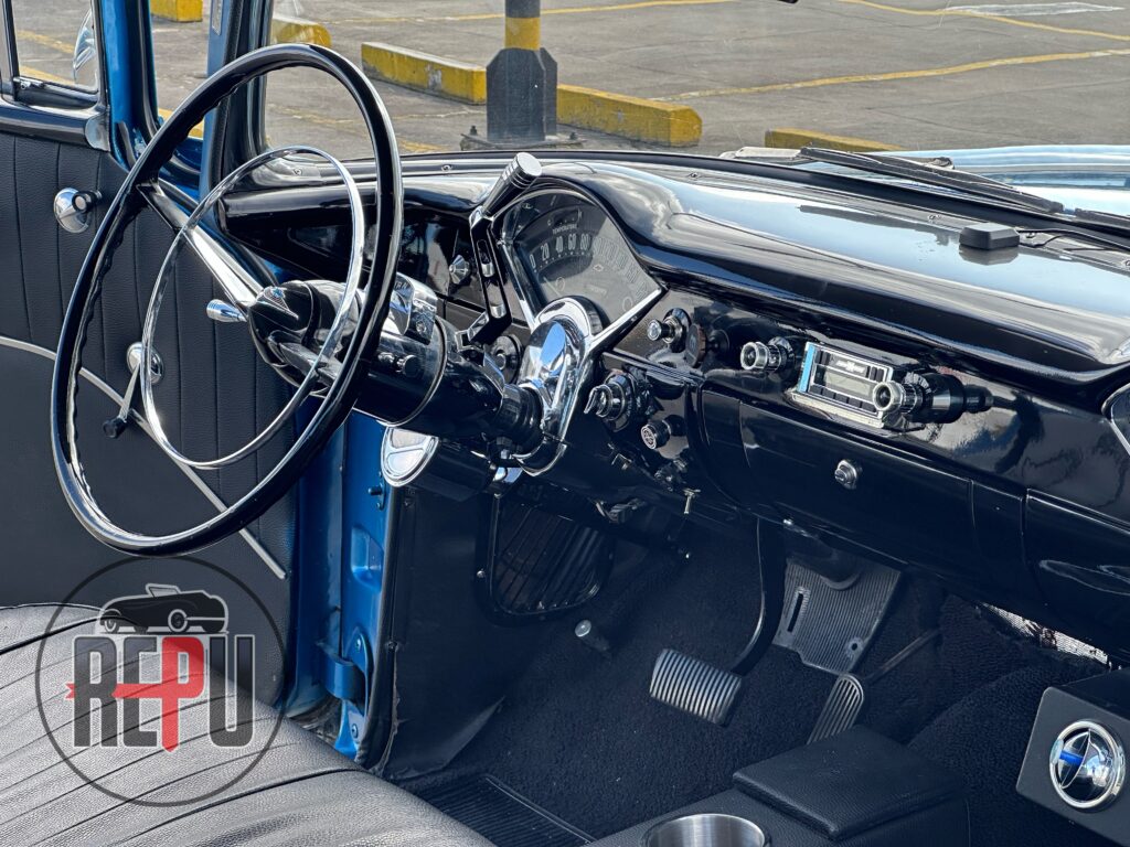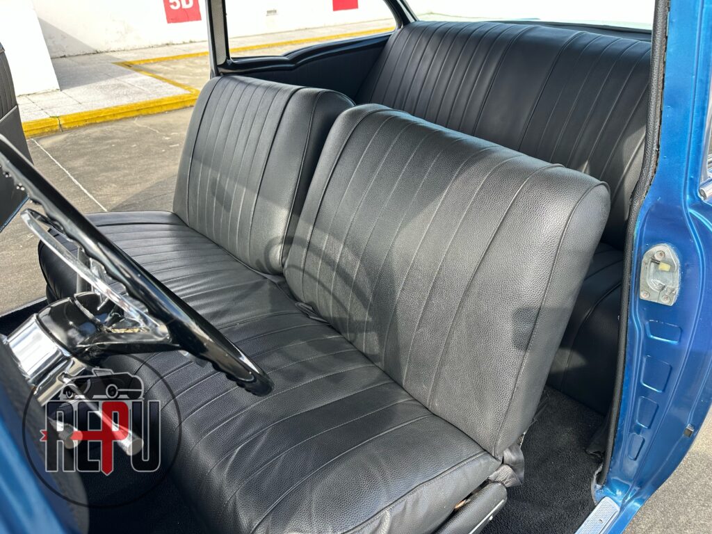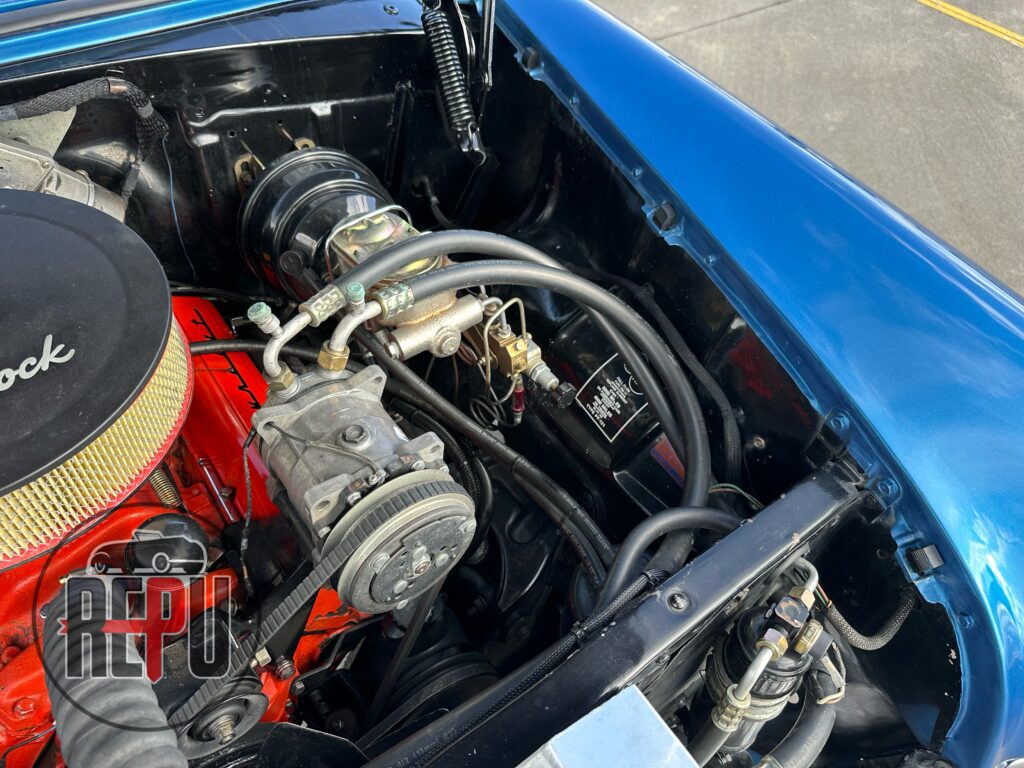 - Entre las características a resaltar, encontramos que su potente motor con headers JEGGs también lo comparten los Corvette de la época y está acoplado a una transmisión automática TH350. Tiene encendido electrónico MSD, carburador doble barril original, alternador Powermaster, sistema eléctrico American Autowire, su eje trasero original con piñón 3.70 y rodamientos nuevos, amortiguadores Bilstein, brazos inferiores tubulares y superiores Eckler con corrección de cáster, frenos de discos delanteros con válvula de proporción ajustable, dirección hidráulica CCP, y aire acondicionado funcional.