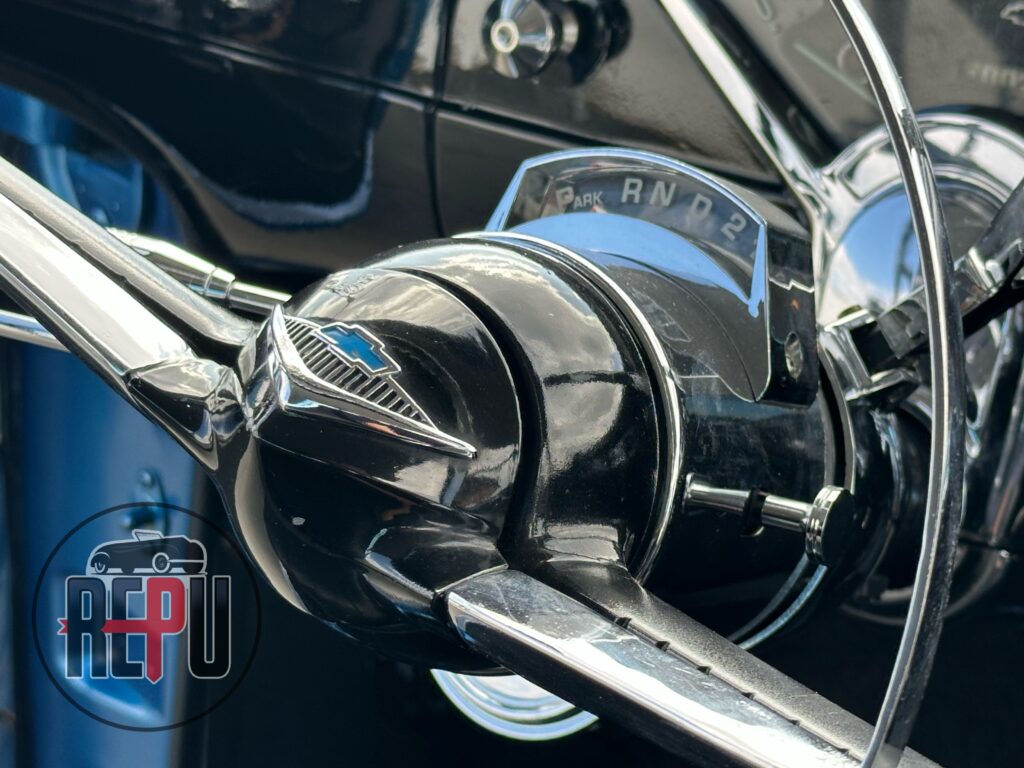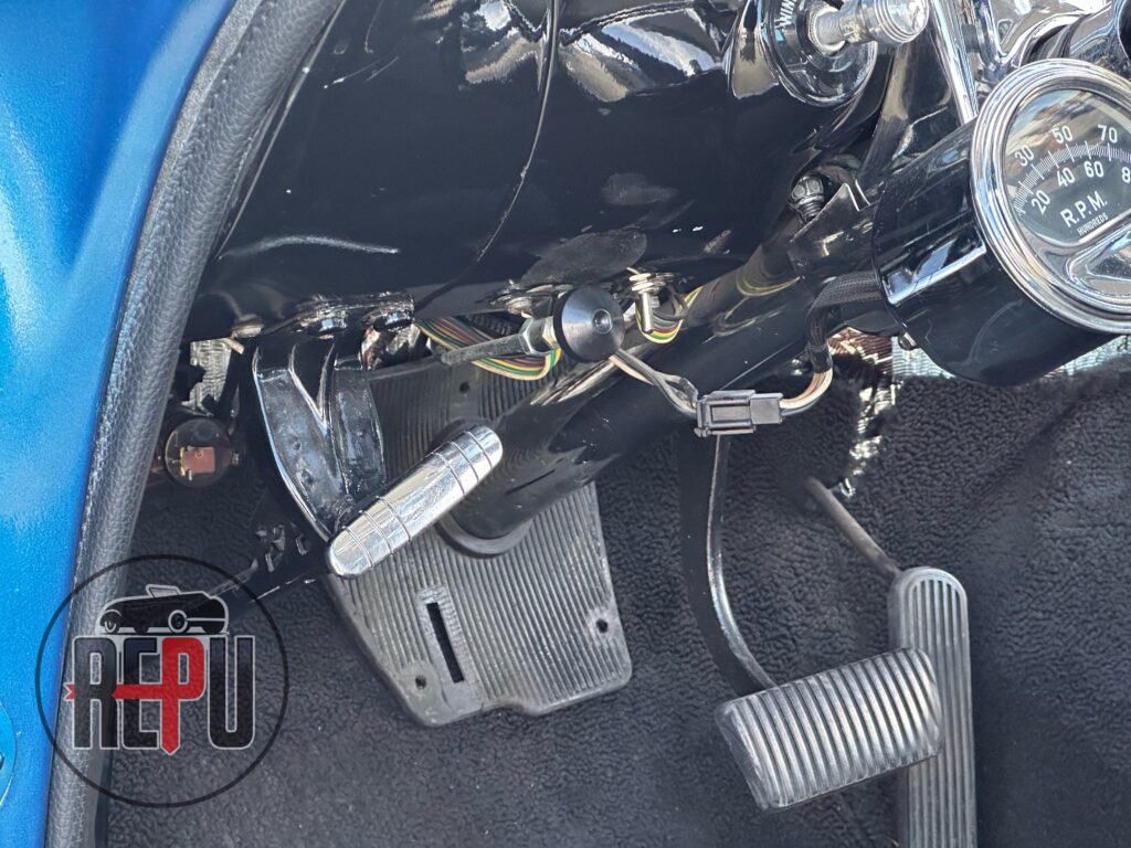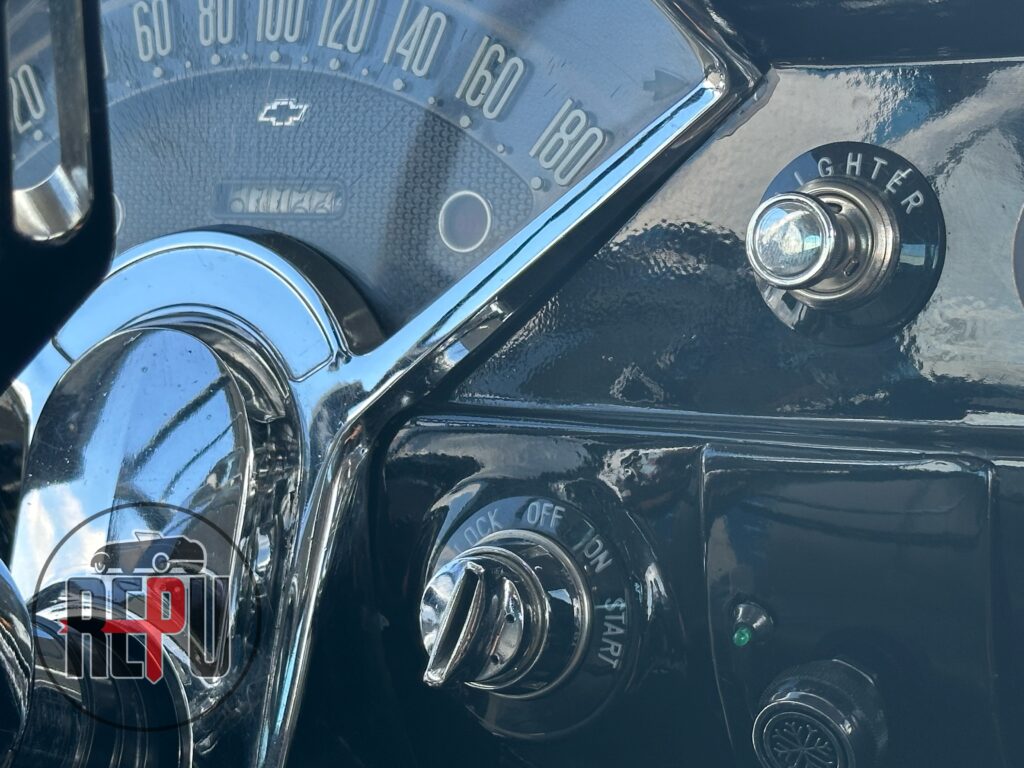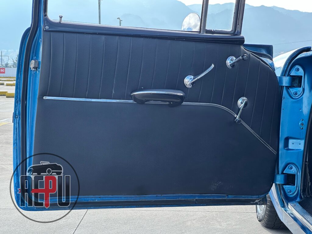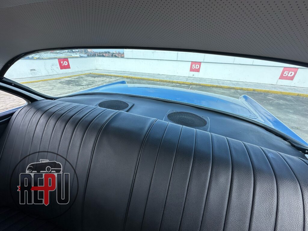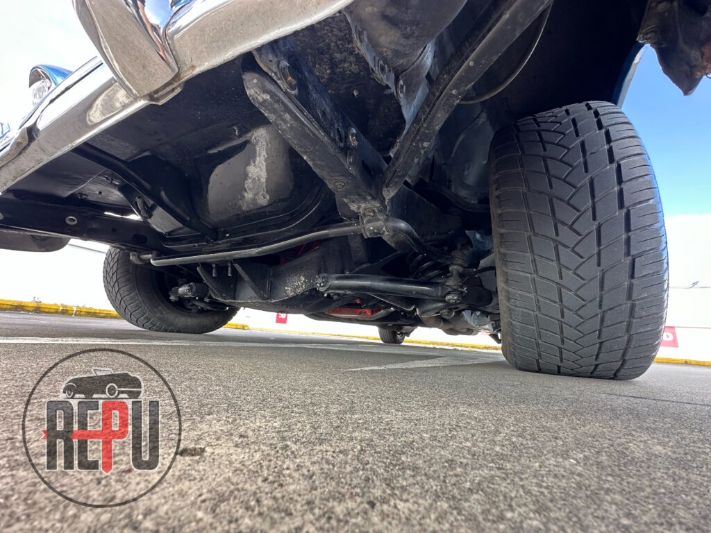 - Entre las características a resaltar, encontramos que su potente motor con headers JEGGs también lo comparten los Corvette de la época y está acoplado a una transmisión automática TH350. Tiene encendido electrónico MSD, carburador doble barril original, alternador Powermaster, sistema eléctrico American Autowire, su eje trasero original con piñón 3.70 y rodamientos nuevos, amortiguadores Bilstein, brazos inferiores tubulares y superiores Eckler con corrección de cáster, frenos de discos delanteros con válvula de proporción ajustable, dirección hidráulica CCP, y aire acondicionado funcional.