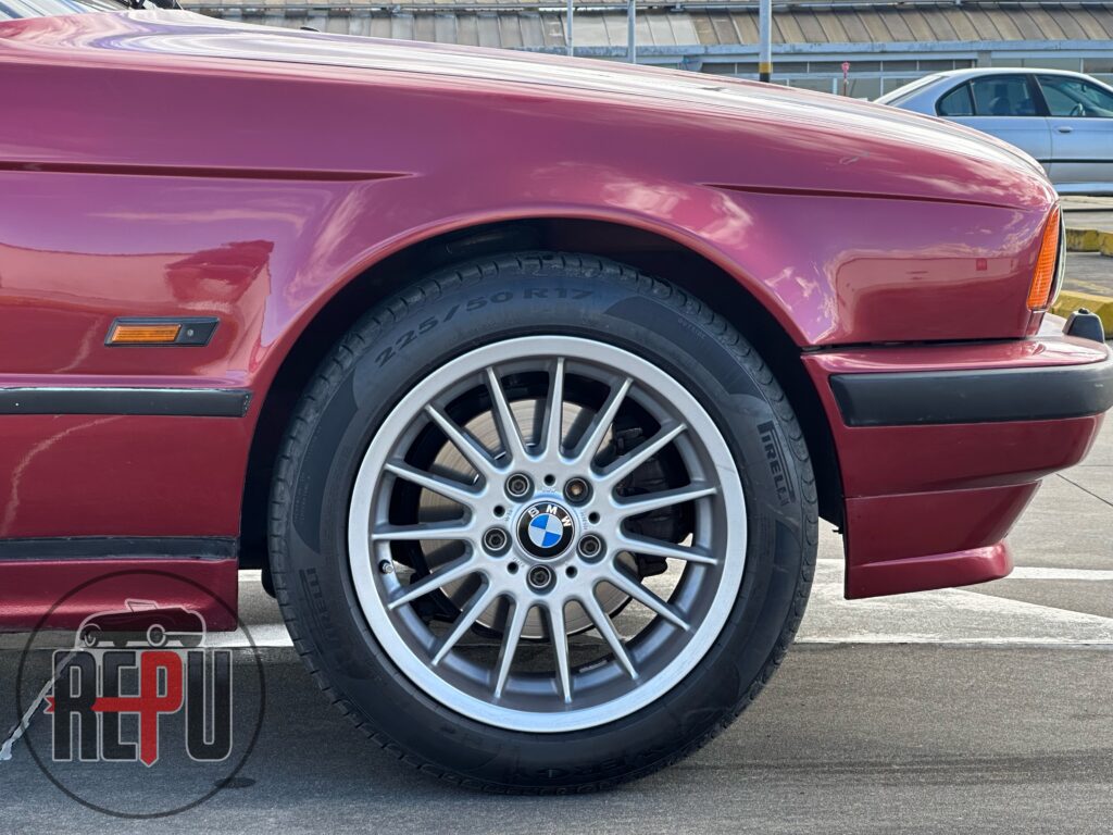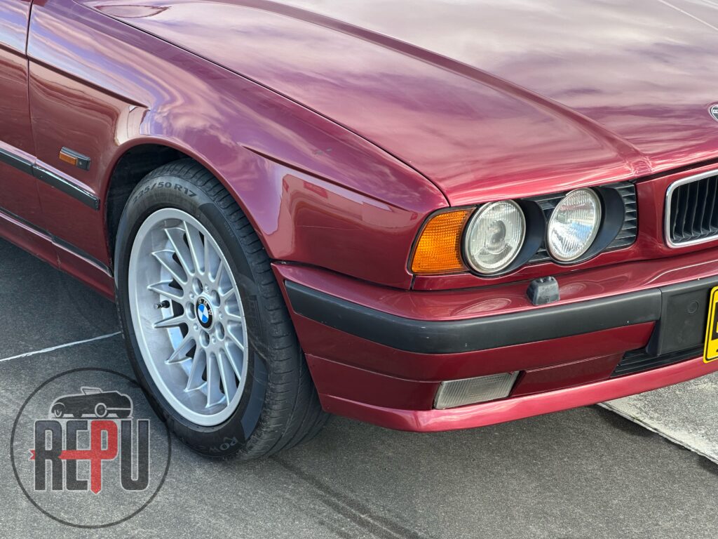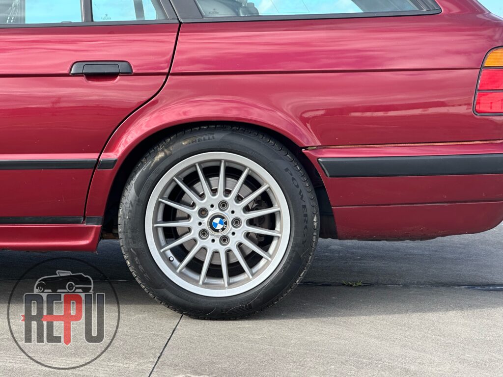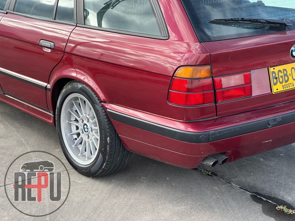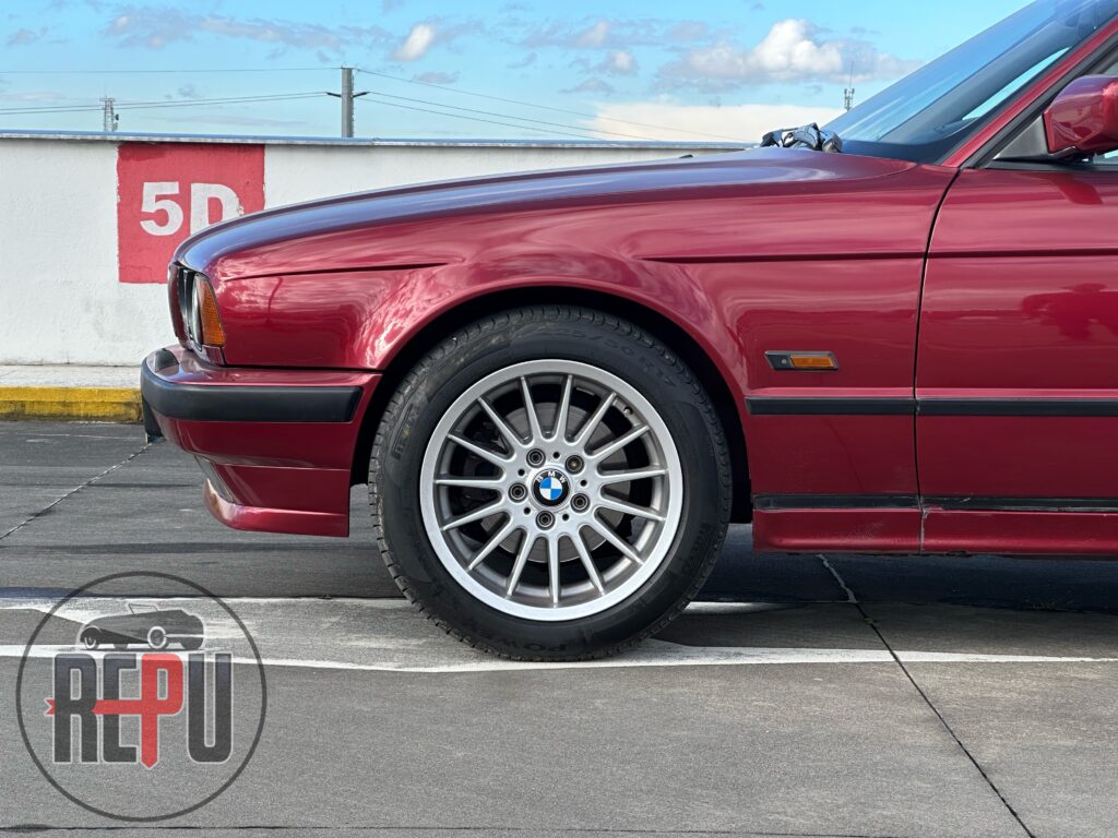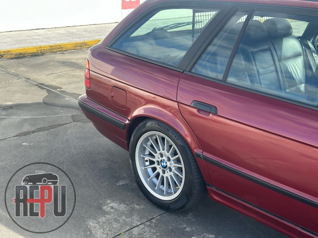 - BMW E34 touring en su último año de producción en su color original Calypsorot metallic. Esta versión equipa el motor M50B25 de 2.500cc, 24 válvulas, 6 cilindros de 192hp, acoplado a una caja mecánica de 5 velocidades que la llevan a una velocidad máxima de 220kmh propulsada a las llantas traseras.